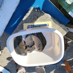ウネリに爆風が加わり正面風をうける釣り座は大変でしたが天候も良く楽しめました。