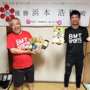 また先日の浜本浩樹選手のJFTチヌ優勝、山田進一選手のJFTチヌ2年連続4位のお祝いを兼ねて宴会も盛りあがりました。
